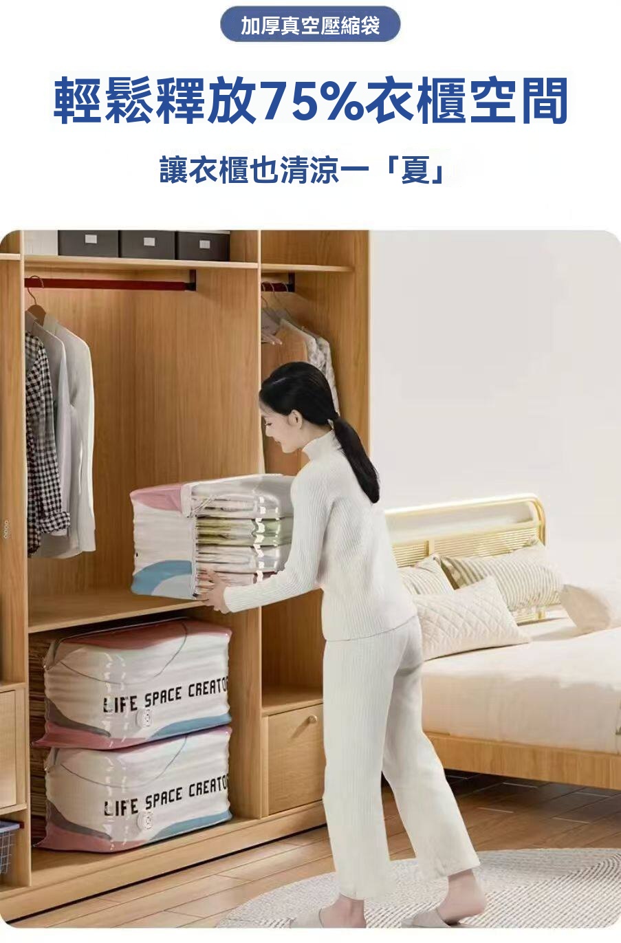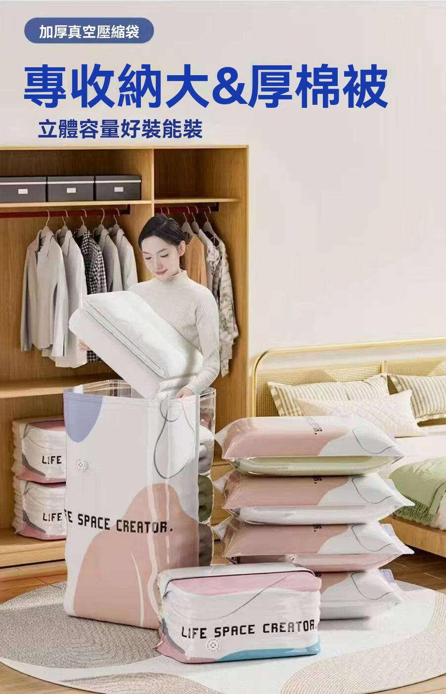 【換季收納革命】免抽氣壓縮袋・一捲省60%空間・棉被冬衣瞬間扁平的魔法收納!