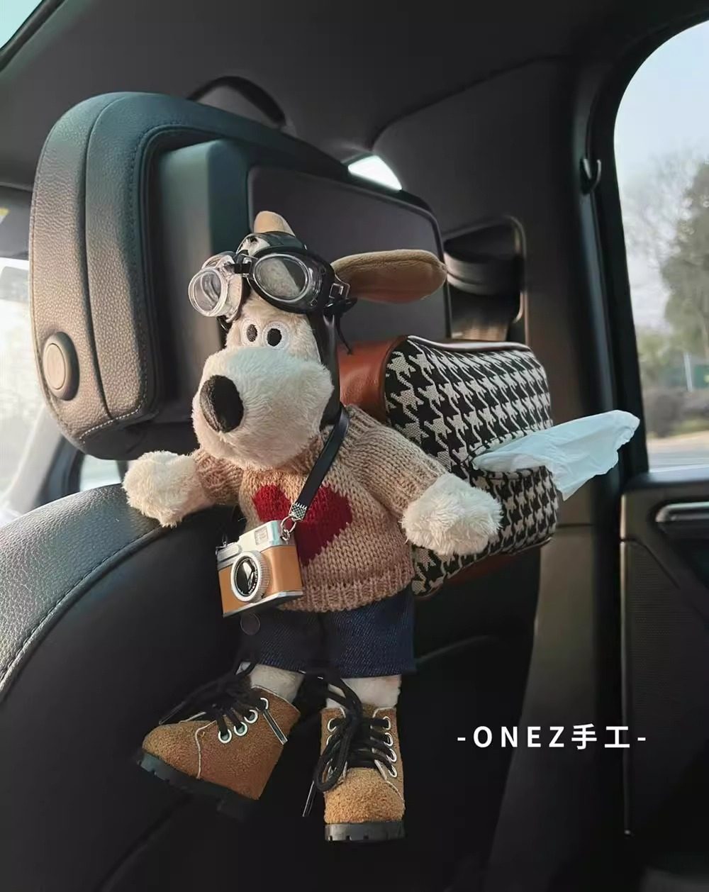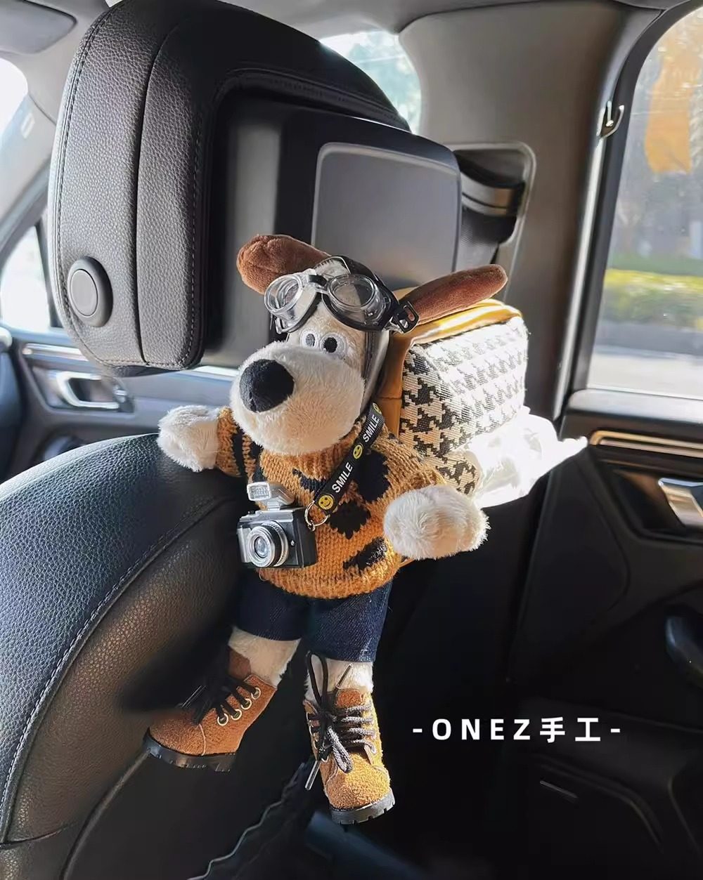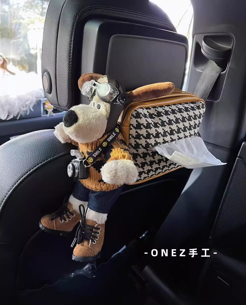 【開車自帶掌門狗攝影師!】潛水狗相機紙巾盒・一按「咔嚓」抽紙巾・車內最萌急救小隊