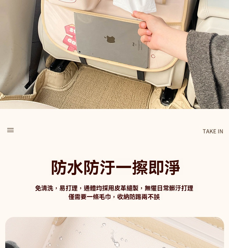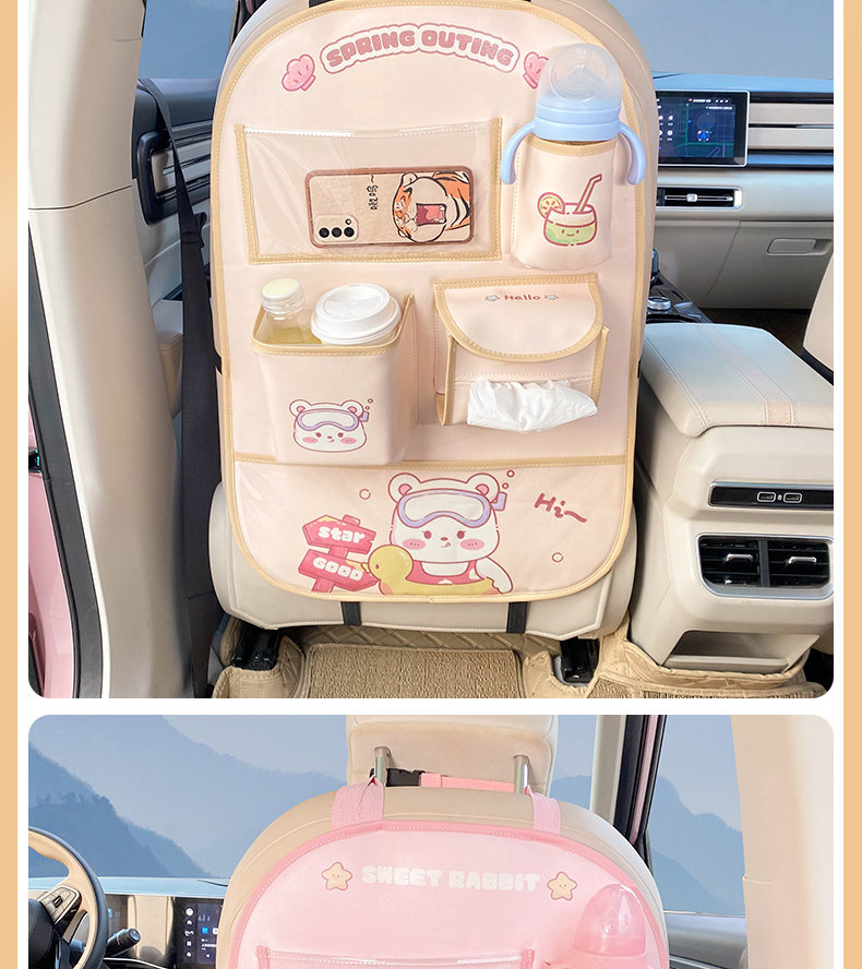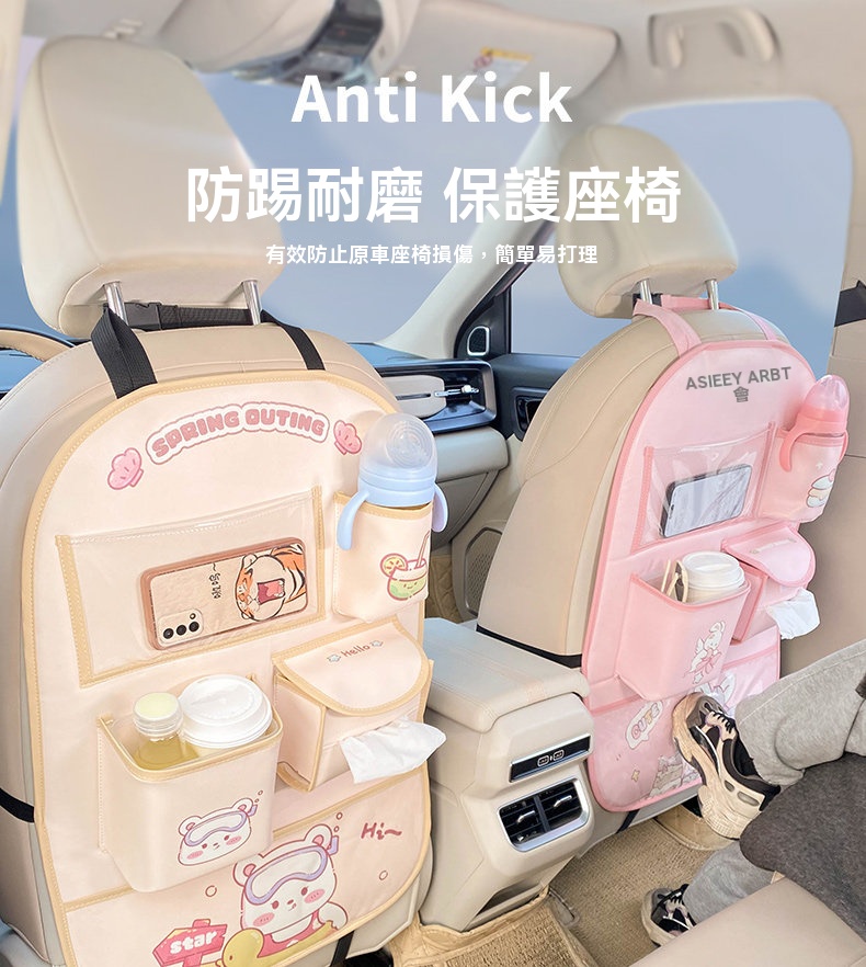 【後座守護神】防踢+收納二合一卡通墊・告別鞋印污漬・車內整潔的終極方案!