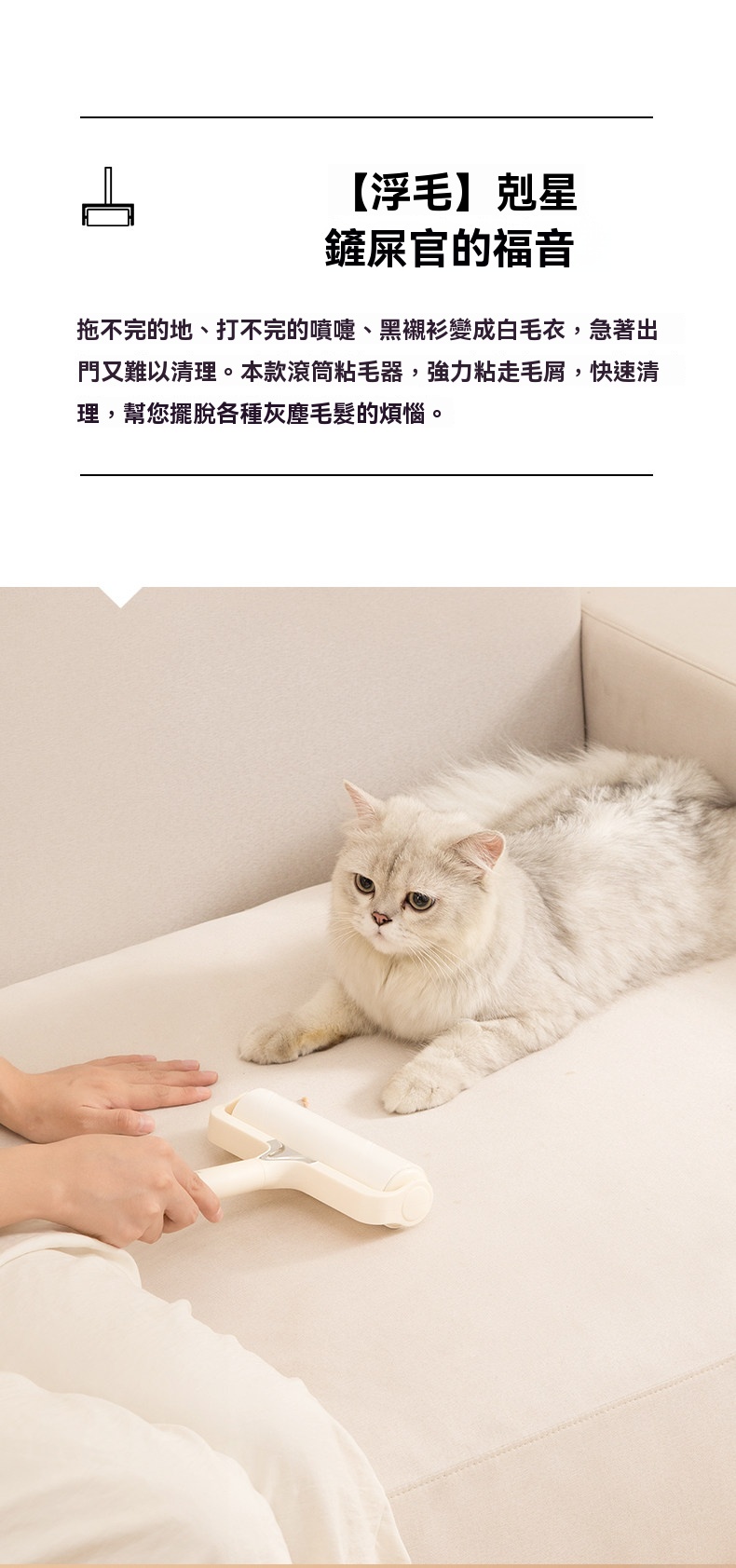 【寵物家庭救星】一秒黏淨毛髮・可撕式替換滾筒・床上衣服瞬間乾淨的神奇魔力滾!